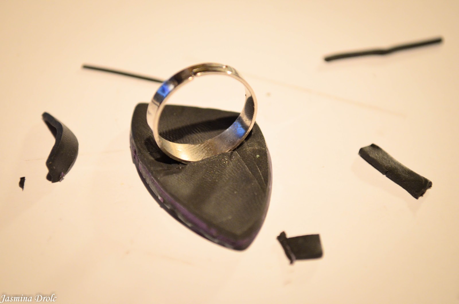 Kar nekaj punc me je že prosilo, če jim lahko pokažem postopek zadelanja kovinske osnove s fimo maso na zadnjo stran prstana. In tako je nastala mini foto zgodba: